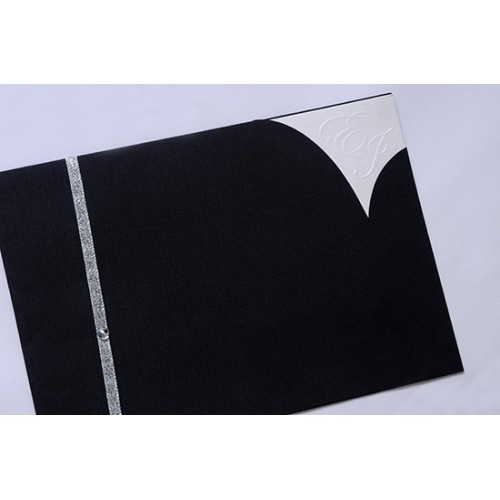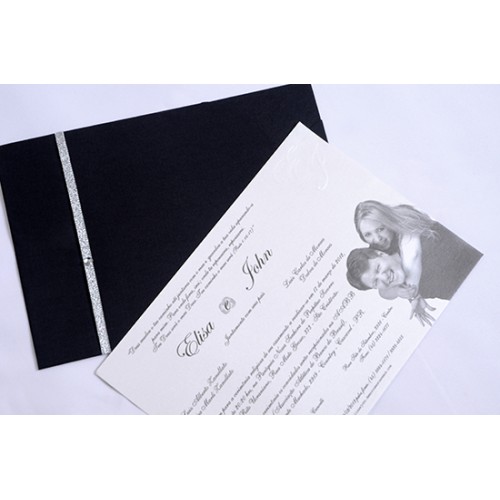 Convite papel Aspen 250gr, impresso em 1 cor, relevo a seco das iniciais.