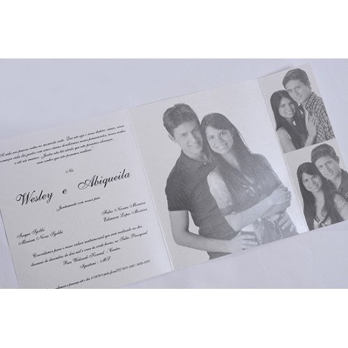 Convite tamanho fechado 17,5x20,5cm, tamanho aberto 41,5x20,5cm papel Aspen 250gr, impresso em 1 cor